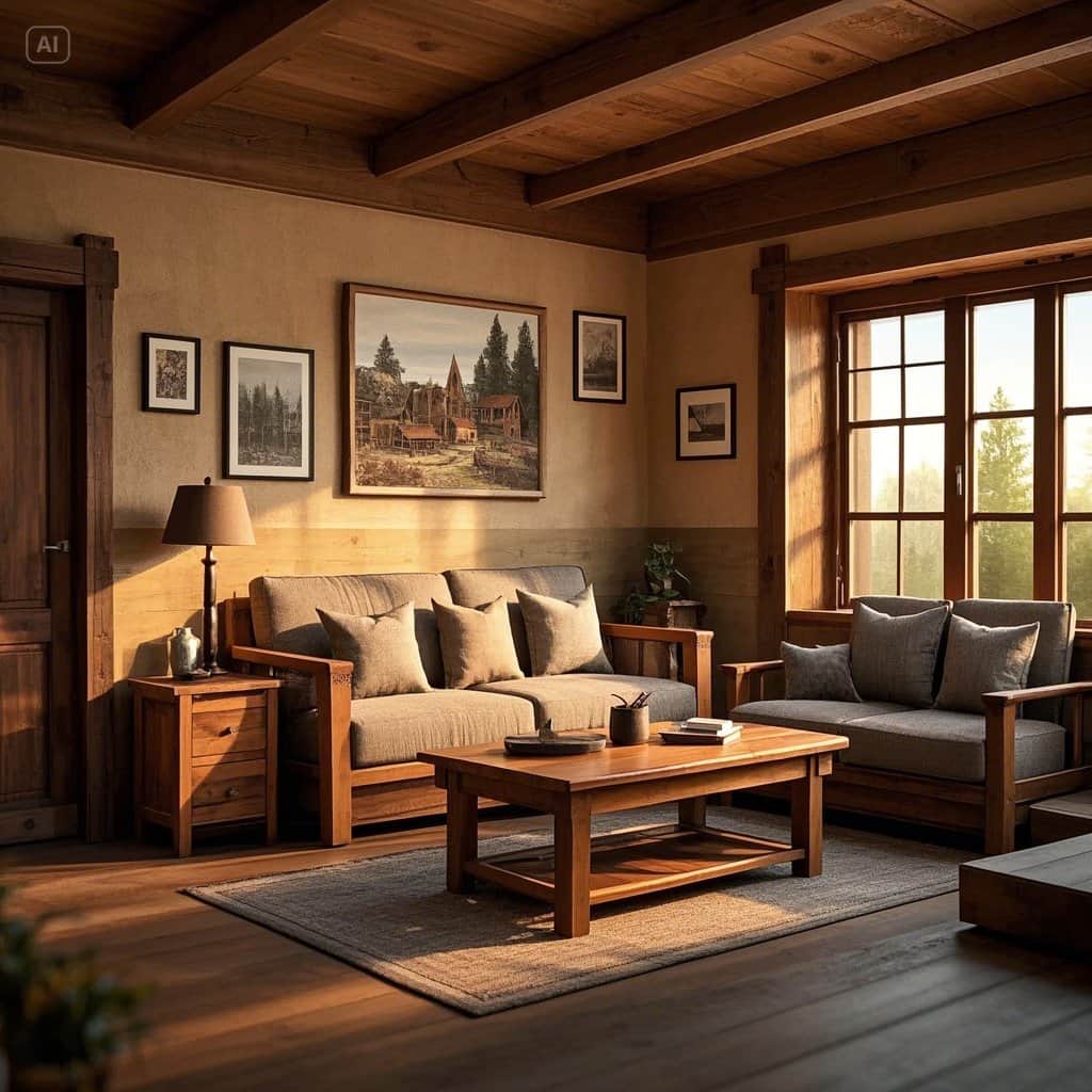The rustic style draws inspiration from nature. Choose a muted, earthy color palette featuring beige, warm browns, soft greens, and off-whites. These shades make rooms feel grounded and cohesive.